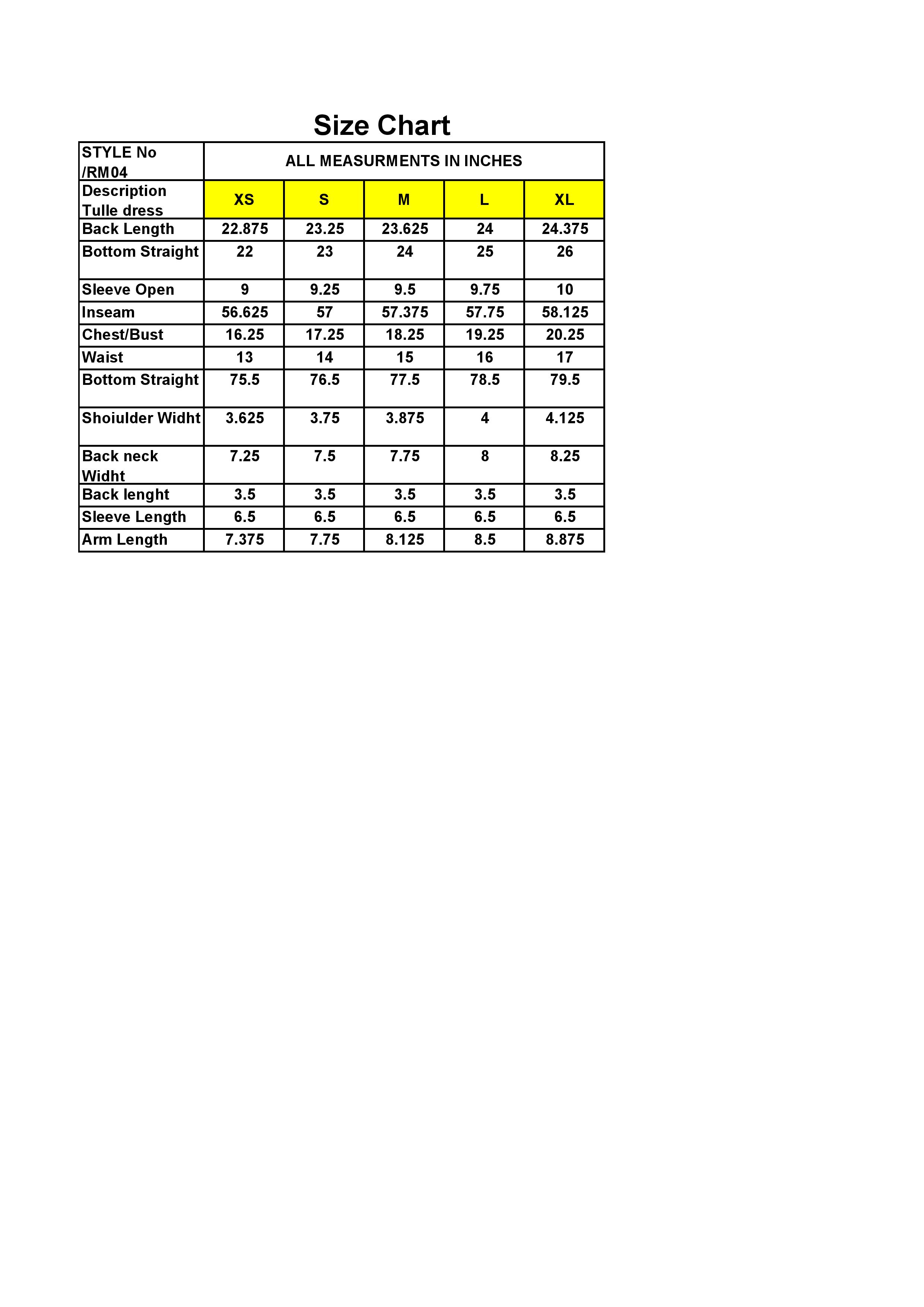 | 36 | XXS | 34 |
